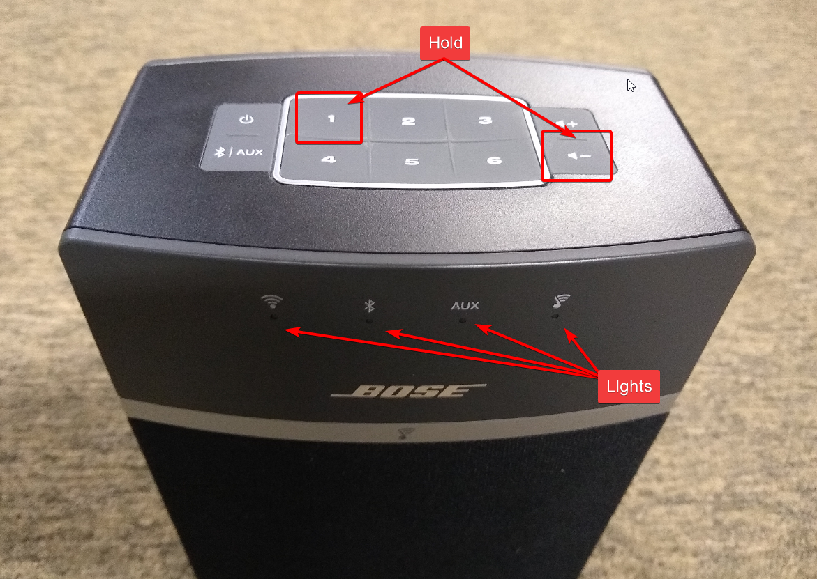 3 In the list you should see the Bose device, if not please make sure that the Bose is in pairing mode. Press and hold down the Bluetooth AUX button on the top of the speaker.