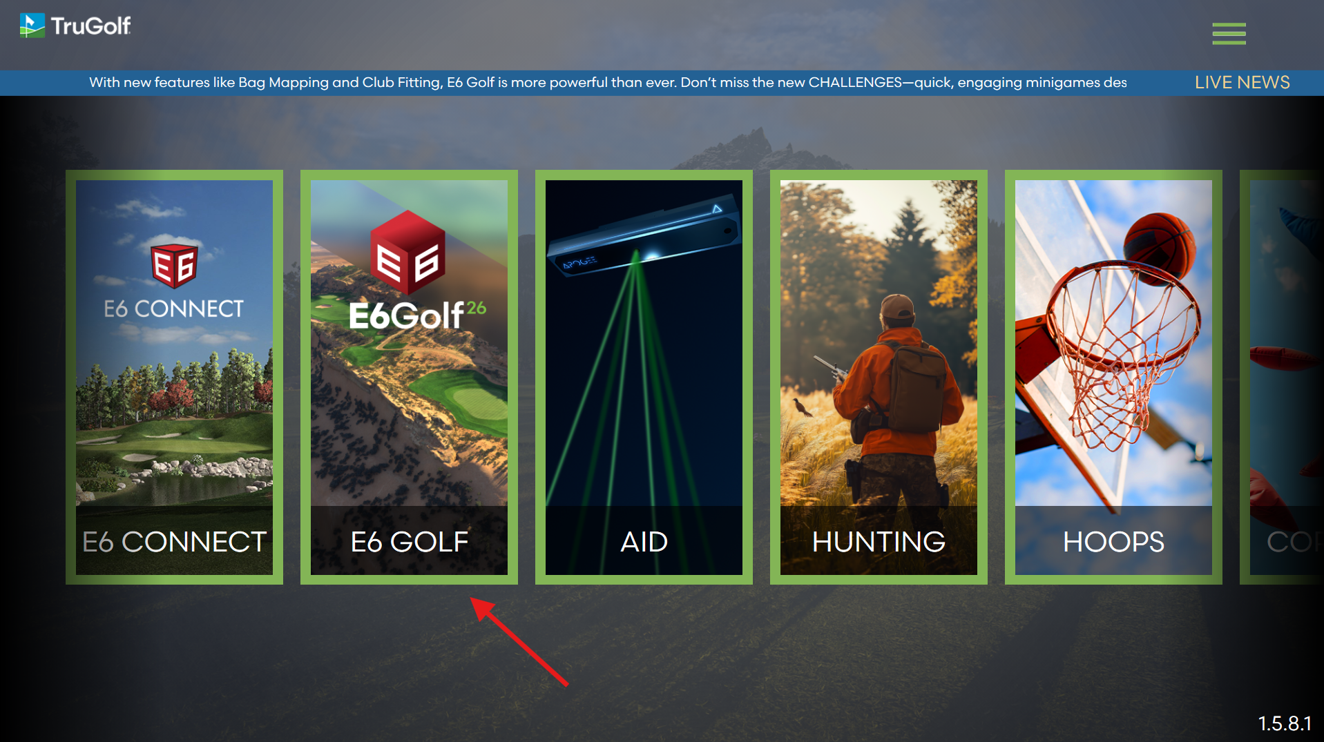 3. Select E6 Golf 2026 from the E6 Product Launcher carousel.