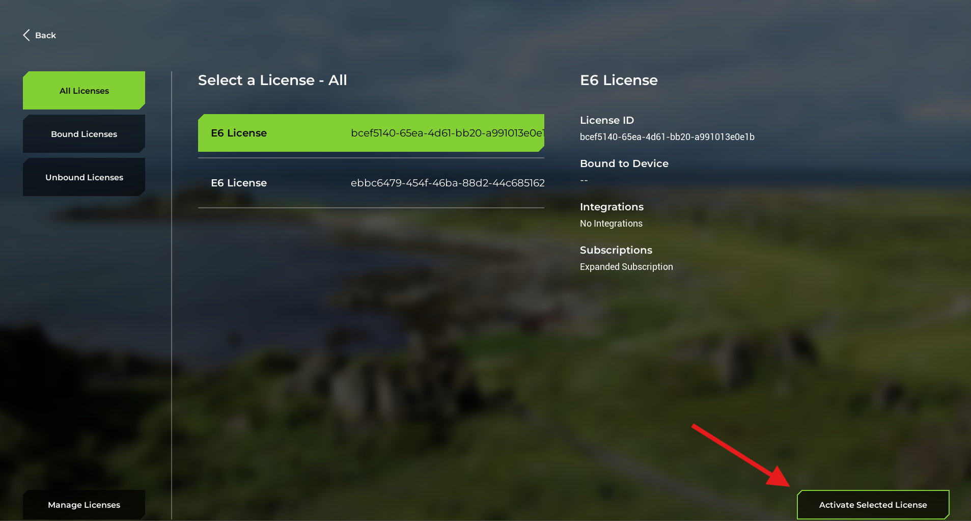 9. Select your E6 Golf 2026 subscription and click ACTIVATE SELECTED LICENSE.